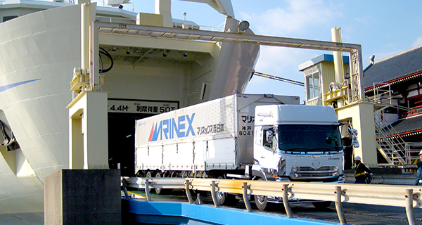 We have established an intermodal transportation service primarily using Hankyu Ferry routes, ensuring continuous transport from Kyushu to Hokkaido.