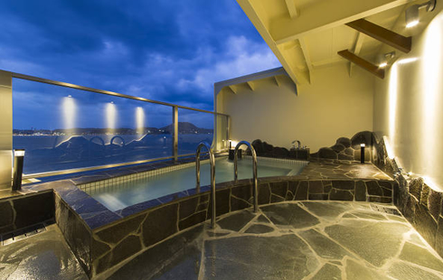 Enjoy your luxurious time in a warm, relaxing bathtub, looking up to a starry sky and roaming over a night view of various islands.