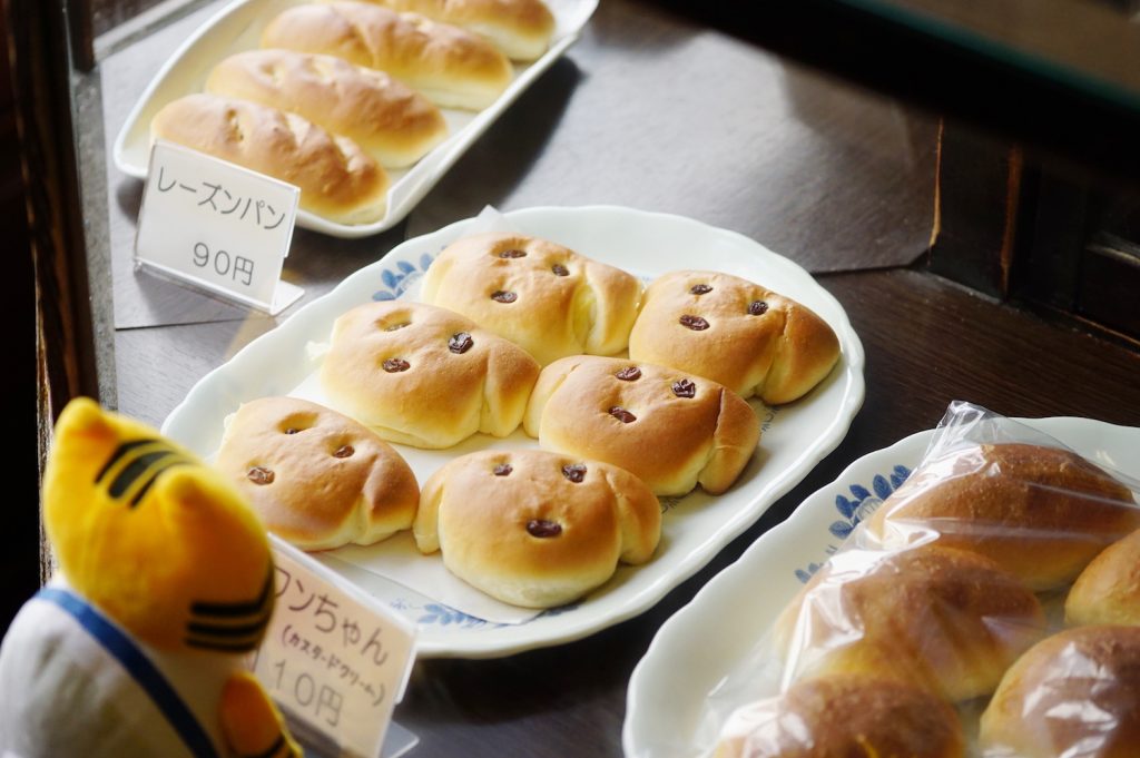 学校の給食で食べたような昔懐かしいコッペパン(チョコレートパン90円)やクリームパン(90円)、丸っこいフランスパン(70円)などが並んでいます。見るからにふっくら柔らかくておいしそう…!