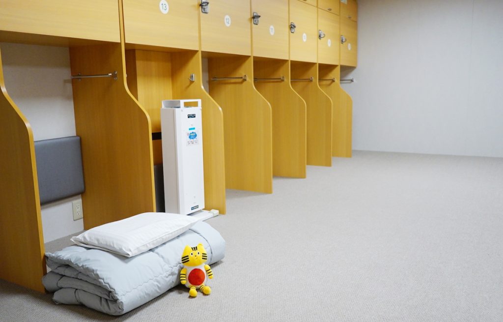 こちらは、和室タイプの相部屋「スタンダード和室」です。区画ごとにパーテーションや電源コンセントを搭載し、バリアフリー対応でリラックスして過ごせます。