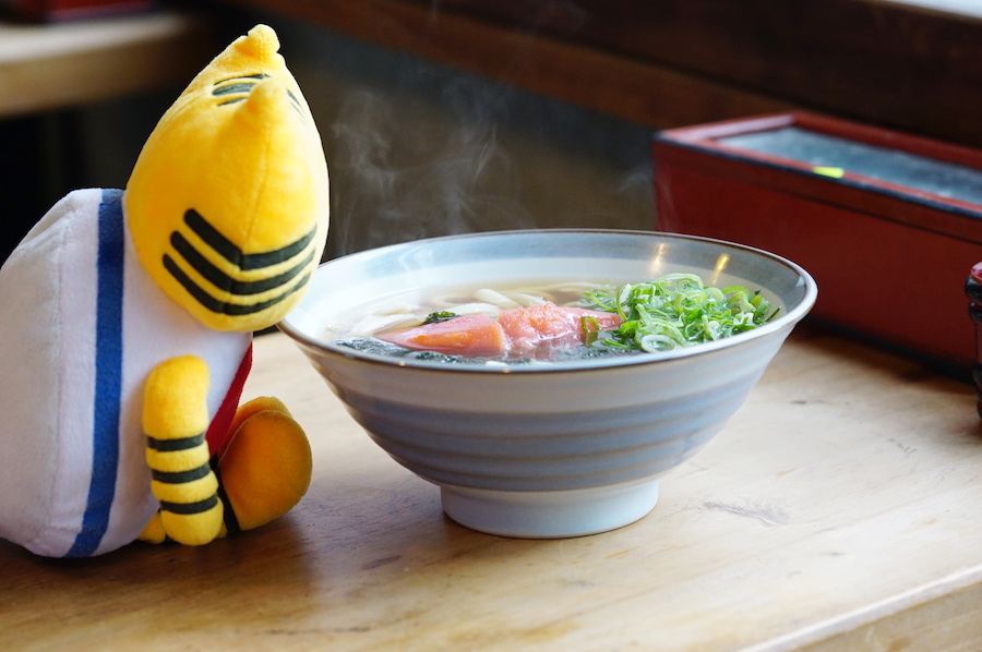 “ここだけの味”の名物うどんはこちら、「からし明太子うろん」(900円)。