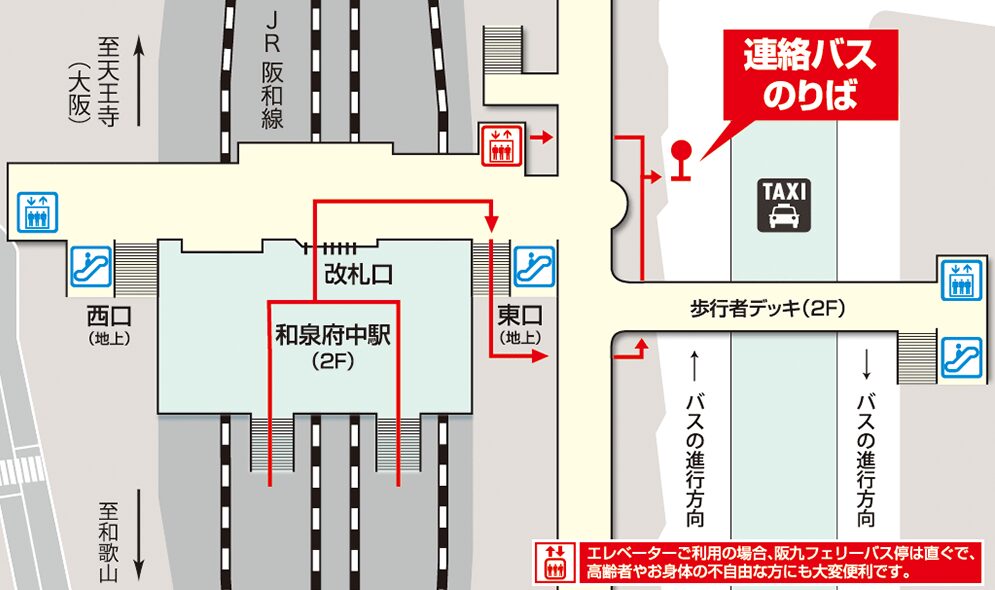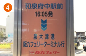 JR和泉府中駅 → 南海泉大津駅 → 泉大津フェリーのりば