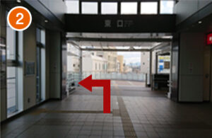 改札口を出て右(東口)に向かいます