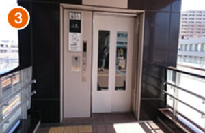 東口を出るとすぐ左にエレベーターがあります