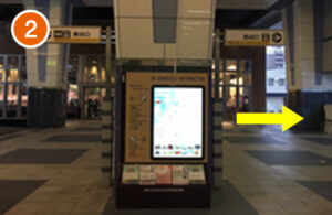 掲示版の前を右に曲がり、西出口に向かいます