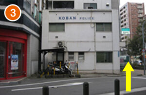 交番の横を通って歩道を進みます